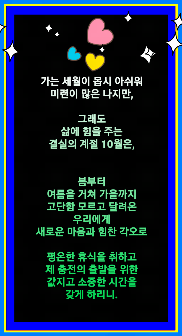 작성자윤 세영 작성시간 24.10.01 10월의 안부 글도