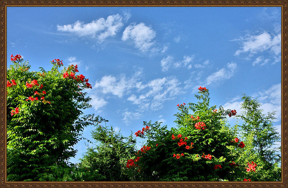 능수화 꽃피움을 기다린 당신인데 꽃 향기 가슴져려 타는 꽃잎 눈물이네. 그윽한 주홍빛 향기는 애절한 눈길인가.