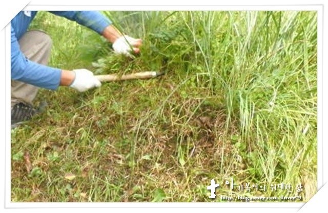 때문에 산소의 풀을 깎아