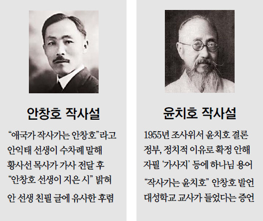 그러나 애국가의 작사자는 윤치호(尹致昊) · 안창호(安昌浩) · 민영환(閔泳煥) 등이