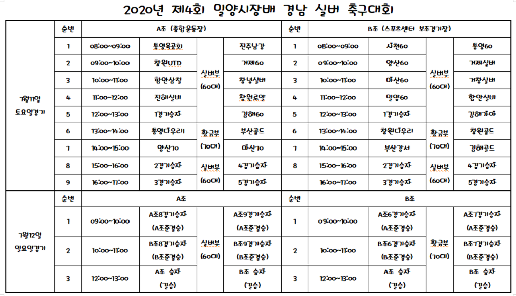 2020 제4회 밀양시장배 경남 실버 축구대회 경기시간표 작성자지영주|작성시간20.07.03|조회수289 목록 댓글 0 글자크기 작게가 글자크기 크게가 다음검색 현재 게시글 추가 기능 열기 북마크 공유하기 신고 센터로 신고 댓글 댓글 0 댓글쓰기 답글쓰기 댓글 리스트