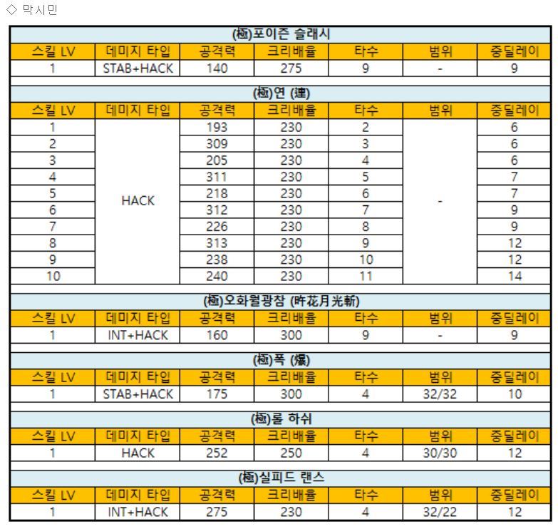 막시민 스킬 정보