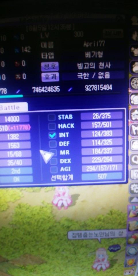 - Stab[ ] Hack[ 300 ] Int[최대] Def[ ] Mr[ ] Dex[ ] Agi[ ]