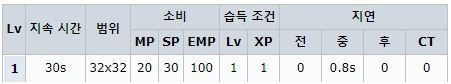 · 사정거리 32 [위치 지정 범위 공격 32x32] · 주변의 적들의 공격력과 능력치가 감소함