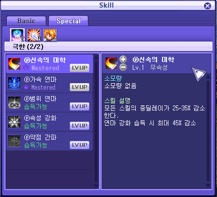 극한 후 스페셜스킬 다 마스터 되는줄 알고