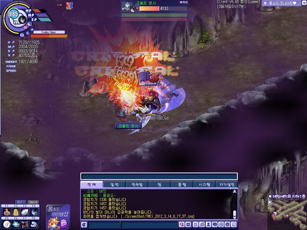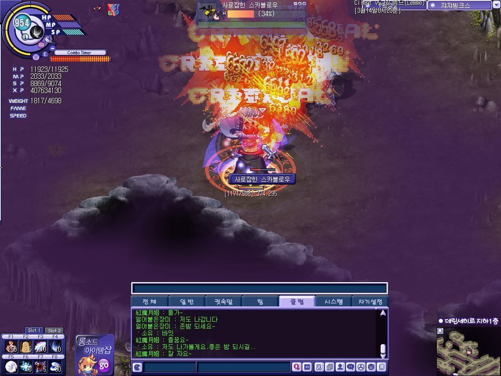 위는 데린1층 일반데미지 블레스 받으면 7천 넘겠네요 최대 콤보뎀 6900