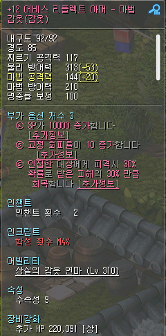 현재 갑옷 부가 스크롤을 구할 수 없는 상황이지만 SP 1만 옵션으로도 충분한 성능을 낼 수 있습니다.