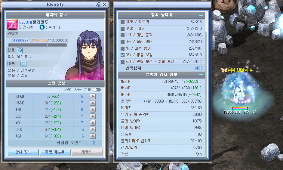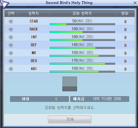 신조 성물은 매주 한 칸씩 올렸는데요. DEX/AGL/MR/DEF 순으로 올렸습니다. 그 이유는 테일즈위버 내 컨텐 자체가 올라갈수록 높은 명중과 크리티컬 수치를 요구하고 그에 따른 피격을 버틸만한 방어를 갖춰야하기 때문입니다.