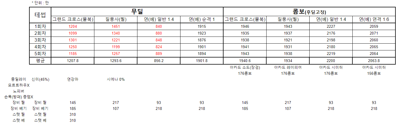 허수아비 대상으로 가장 DPS가 높게 나왔네요.