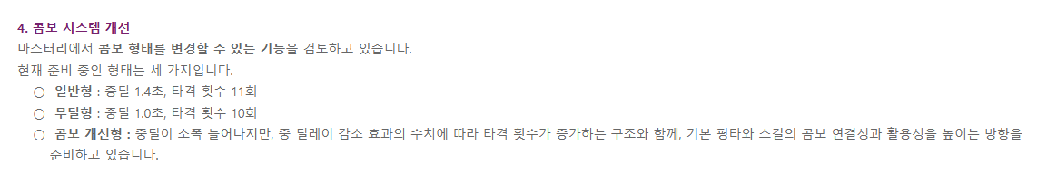 매우 민감한 주제인 '콤보'시스템에 대해서 소개를 위해