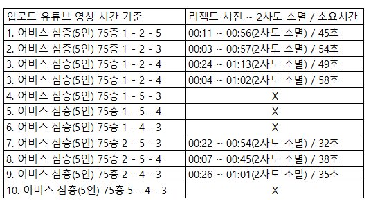 처음 리젝트 이후 재시전하는데 걸린 시간이 약 1분에서 1분10초 사이로 제각각 달랐습니다.