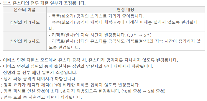 - v8.04 어비스 관련 패치 내용(2020. 12. 17.)