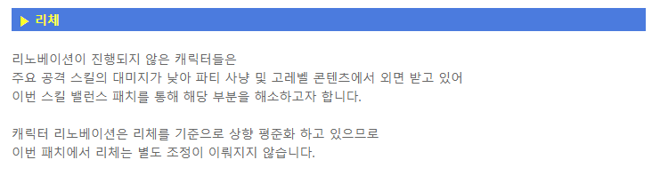 현재 밸런싱 패치 취지가 리체를 기준으로 상향평준화 하는 추세(개발자 노트 공식 언급)라서