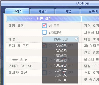 FULL HD 해상도, 전체창 모드, 창 크기 조절, 고해상도 리소스 등