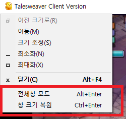 테일즈위버에서 지원하는 해상도는 가로1280이 최대였으나