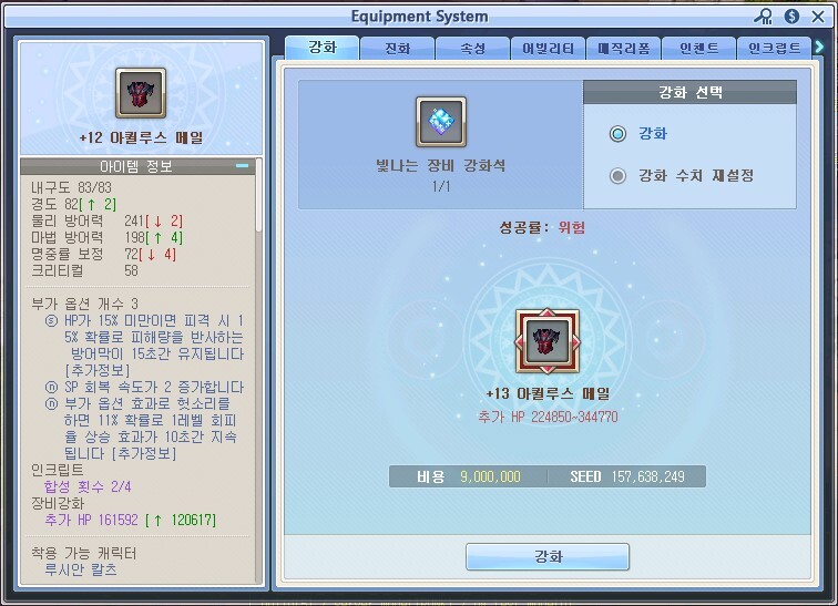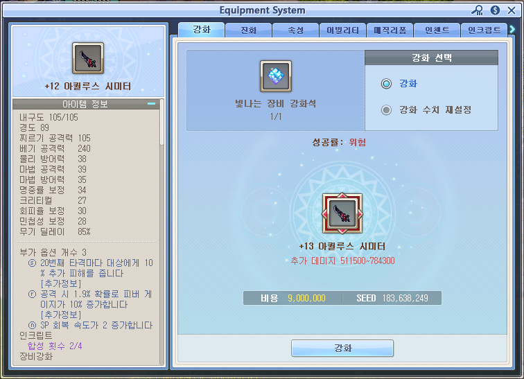 또한 강화 방식도 이전과는 다른 형태로 변경이 되어 +12단계로 강화를 하려면