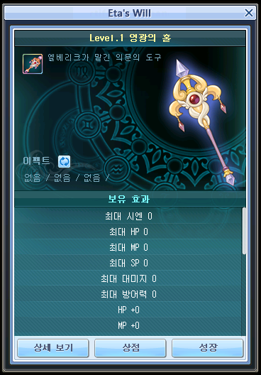 • HP/MP/SP 증가