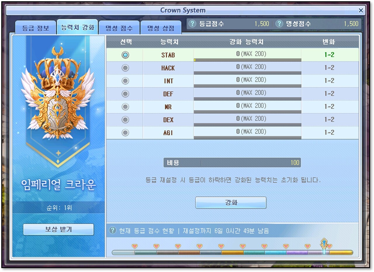 ① 크라운 등급에 따른 능력치 강화 비용