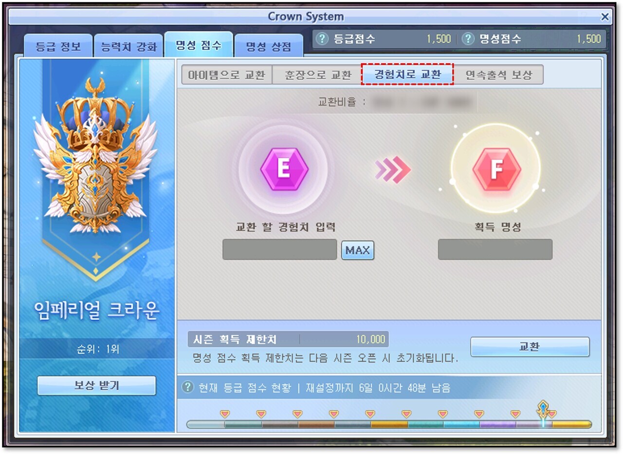 ③ 경험치를 명성 점수로 교환할 수 있습니다.