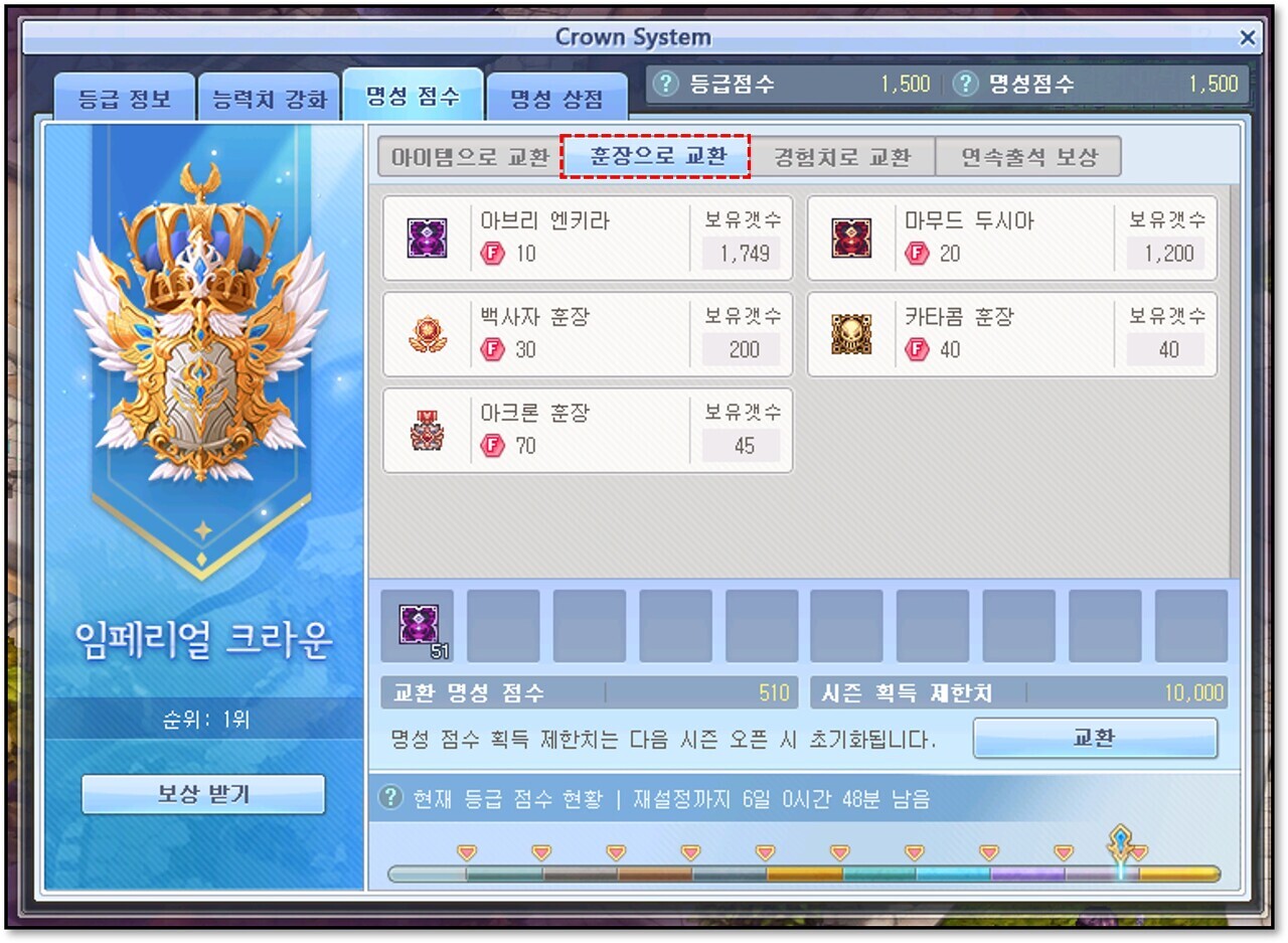 ② 특정 훈장을 명성 점수로 교환할 수 있습니다.