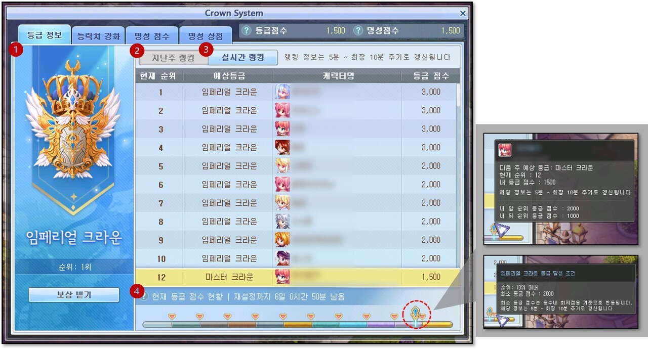 ※ 순위 집계 중인 시간 동안에는 크라운 시스템을 이용할 수 없습니다. (시스템 UI 오픈 불가)
