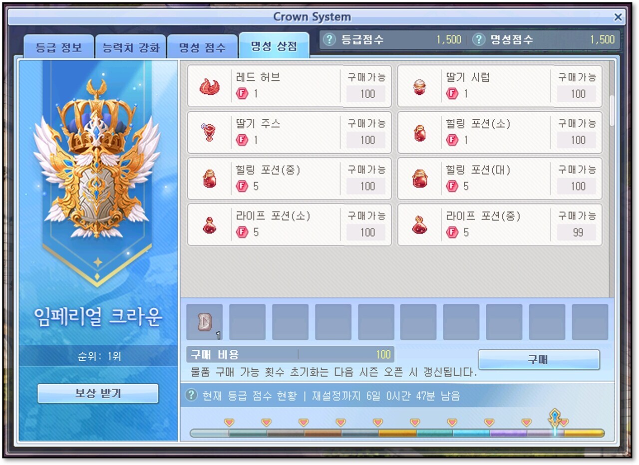 이번 크라운 시스템에서는 기존에 사용처가 부족하여 유명무실했던 명예 점수를