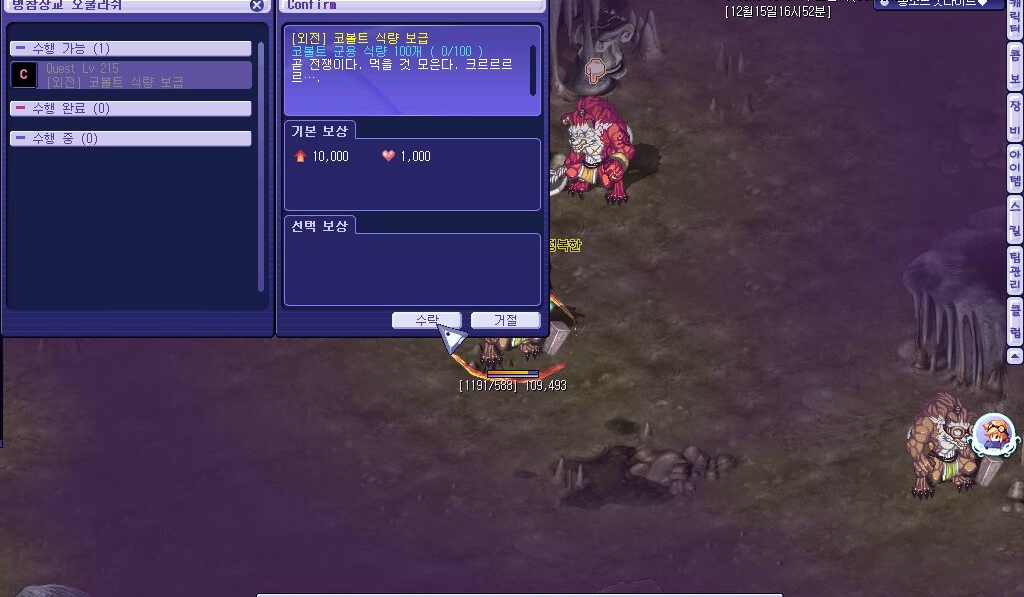 그럼 퀘가 생겨있습니다. 100개....ㅠ