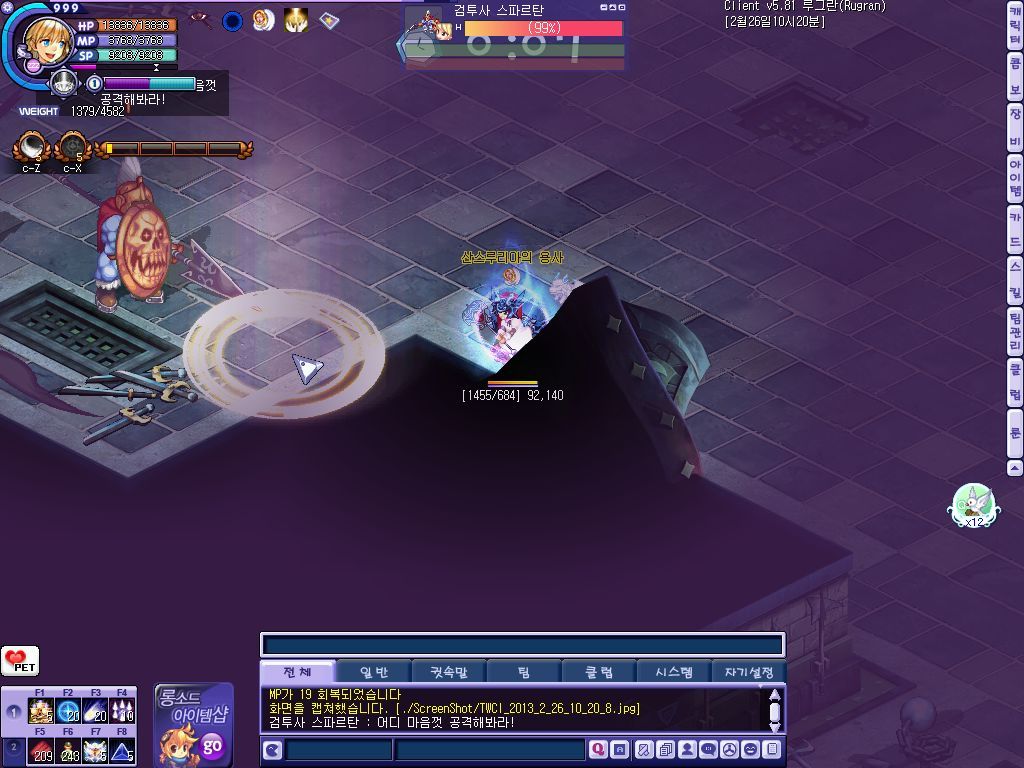 답댓글 작성자루그]열화 작성자 본인 여부 작성자 작성시간 13.02.26 맨밑에스샷 진행퀘중에찍은거에용 뎀딜되는사람이 얼땡걸고 자리잡고 나머지분들 다저쪽구석으로 보내고 하는중 ㅎㅎ