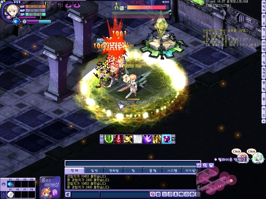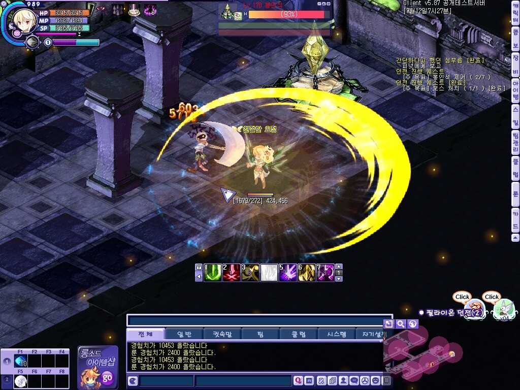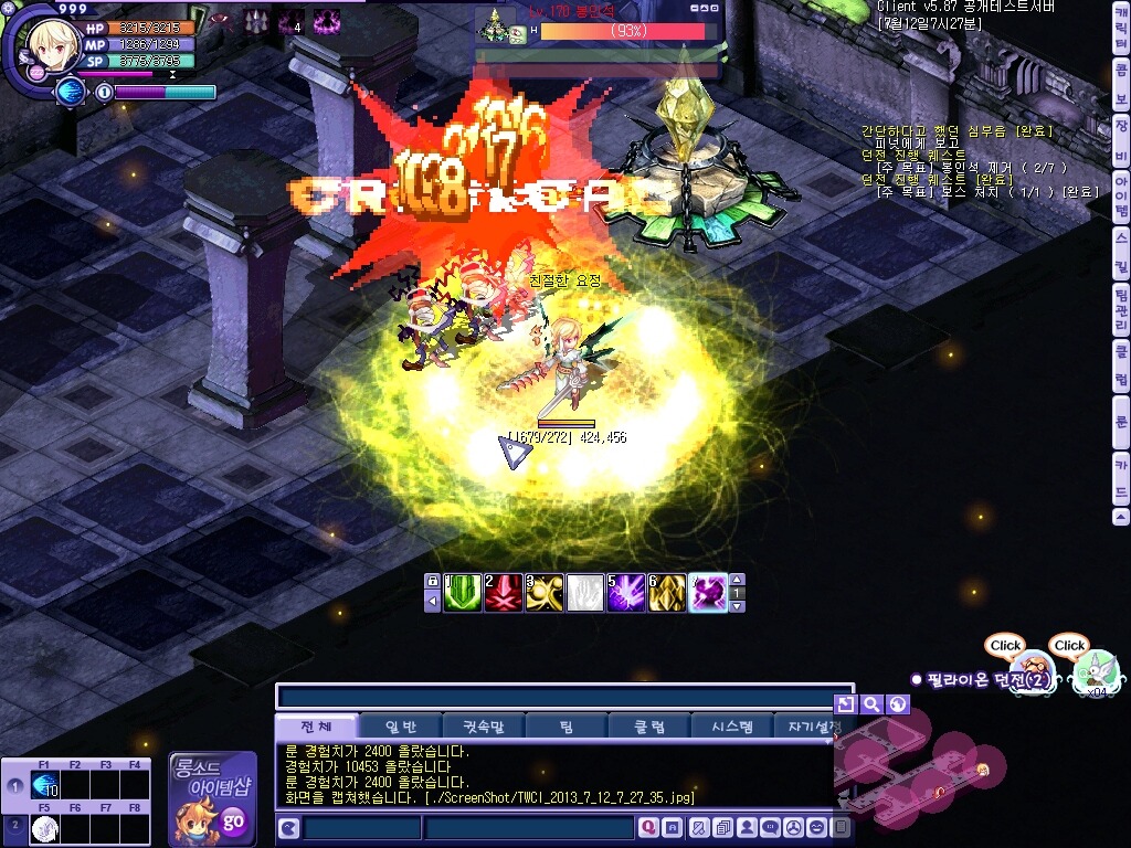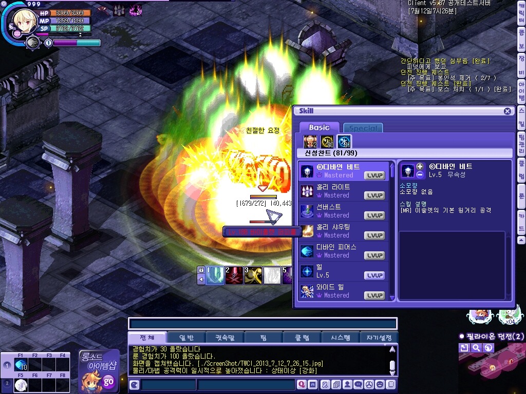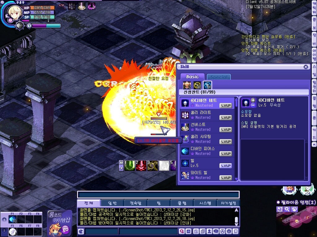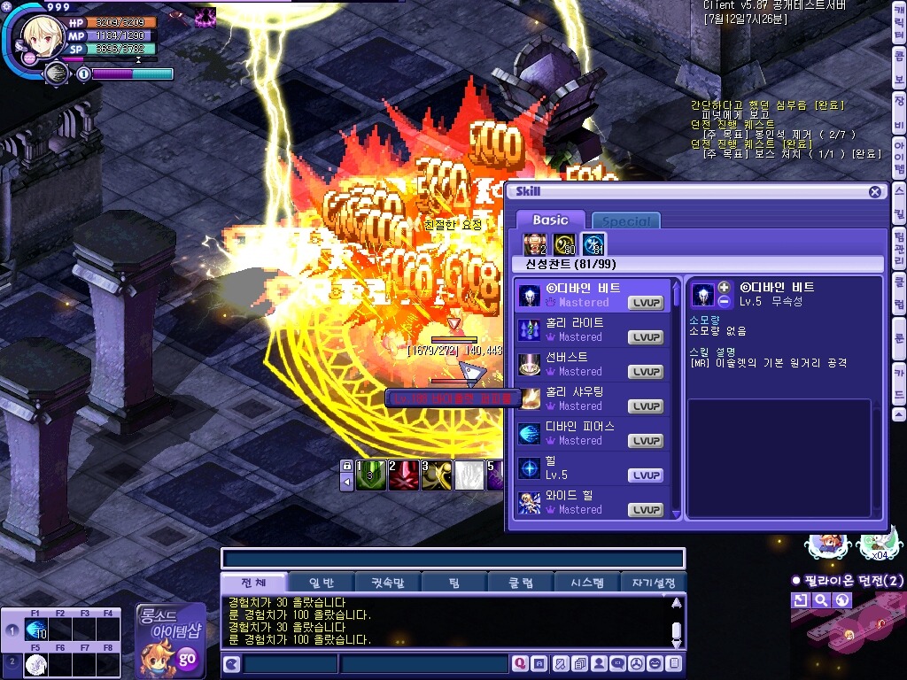 다음은 신성찬트를 이용한 공격인데요, 이것은 아나이스처럼 보조퀵슬롯에 등록이 되며 숫자키로 사용할 수 있습니다.