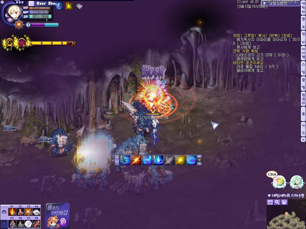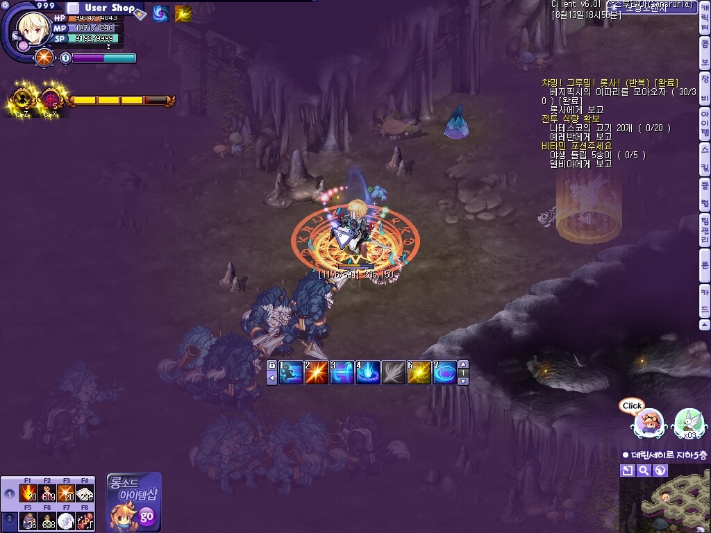 몹이 가장 잘몰려서 사냥하기쉽다는 3층을 가보았는데....사람이 별루없는거같은데도 몹이 유난히 없더군요..