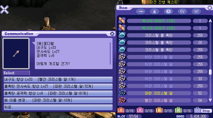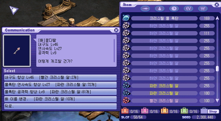 우선 물폭탄 공격력 Lv 9 / 물폭탄 연사속도 Lv 27 가 되니까 업그레이드가 안됩니다. △