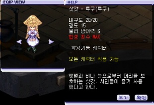 뚜뚜 인형 / 사슴뿔 / 빨간코 / 무사 투구 / 물동이 / 사또 모자
