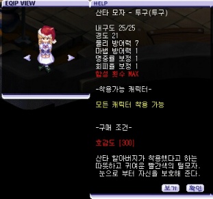 마법 헬름 / 산타 신발 / 산타 장갑 / 산타옷 / 솜브레로 / 삐에로 모자