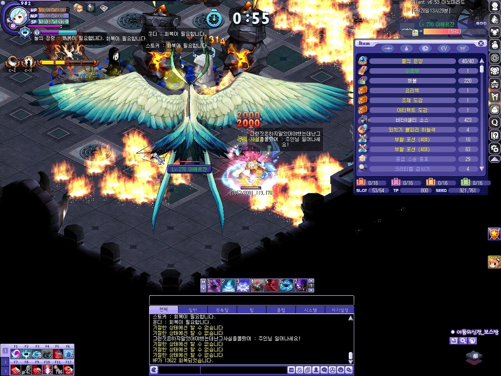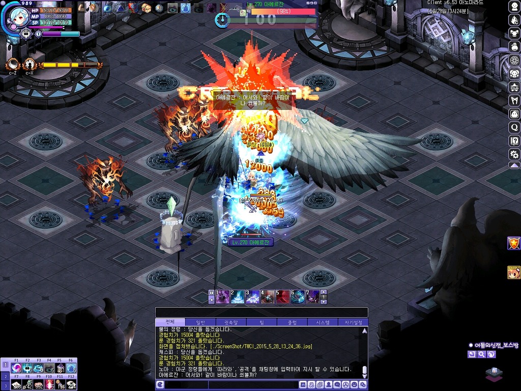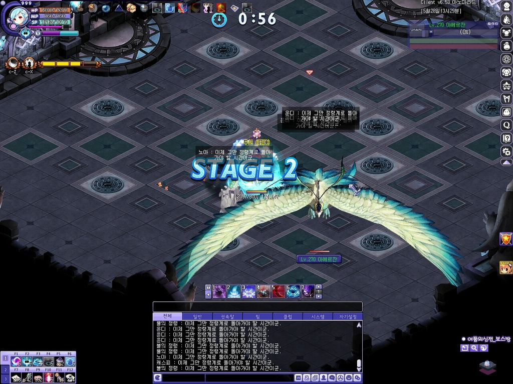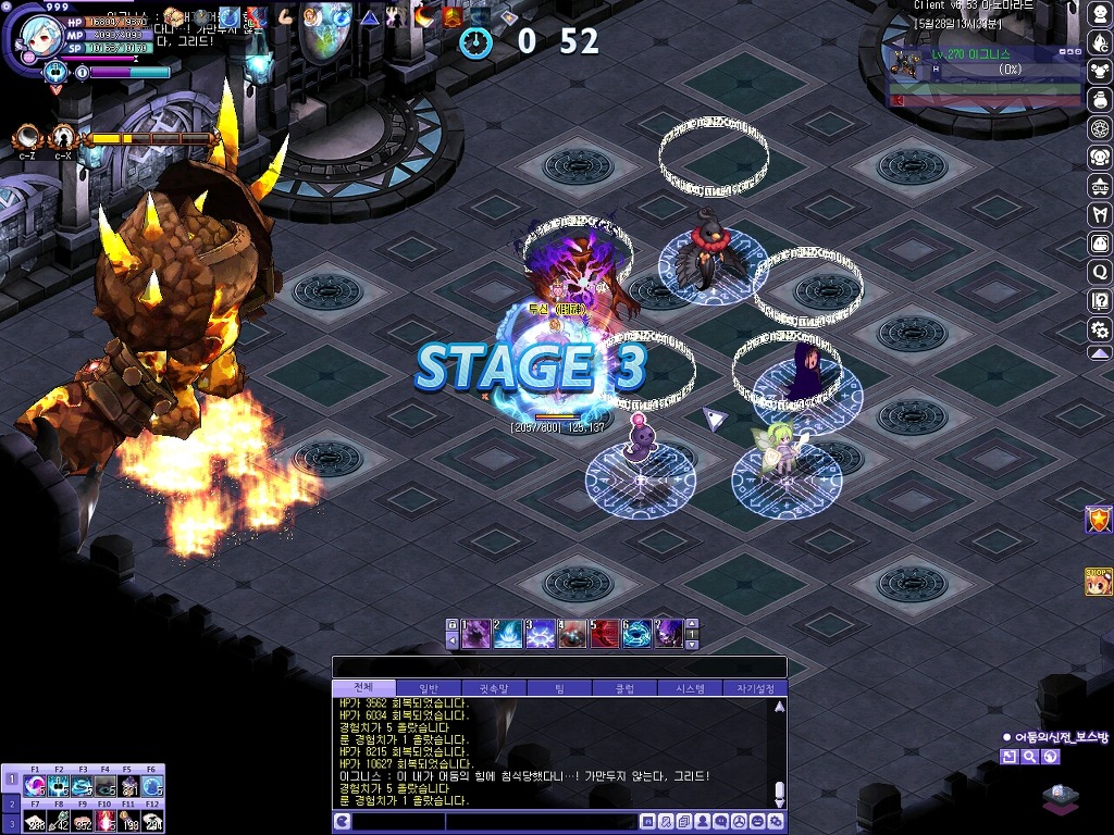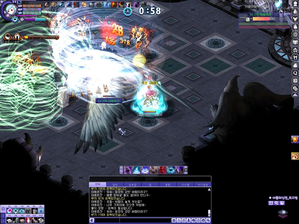 첫 번째 보스 아에르잔입니다. 패턴은 기존과 같으며 보스 레벨이 270인 것으로 보아 일반 수준으로 추정됩니다.