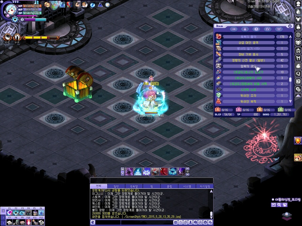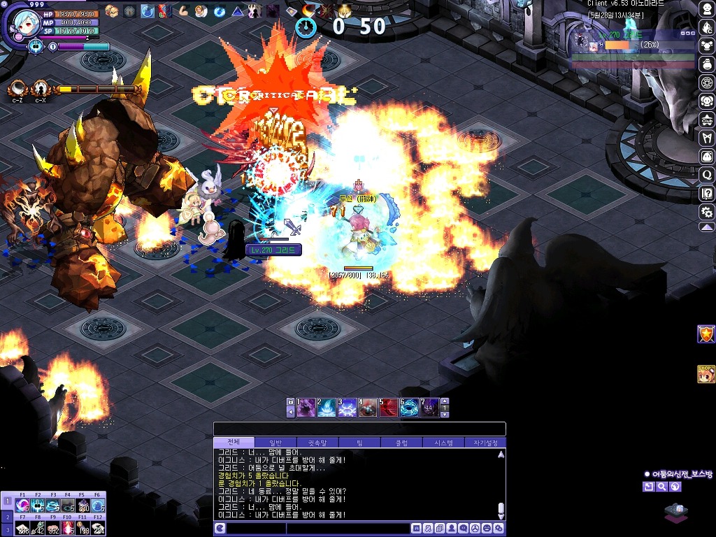 작성자[미스트랄]꼬맹다람쥐/까꿍이 작성시간 15.05.28 뭔가이상하다했더니 보스들이 이상했구나;; 하필이면 버그먹은 보스 둘이 걸리네;;