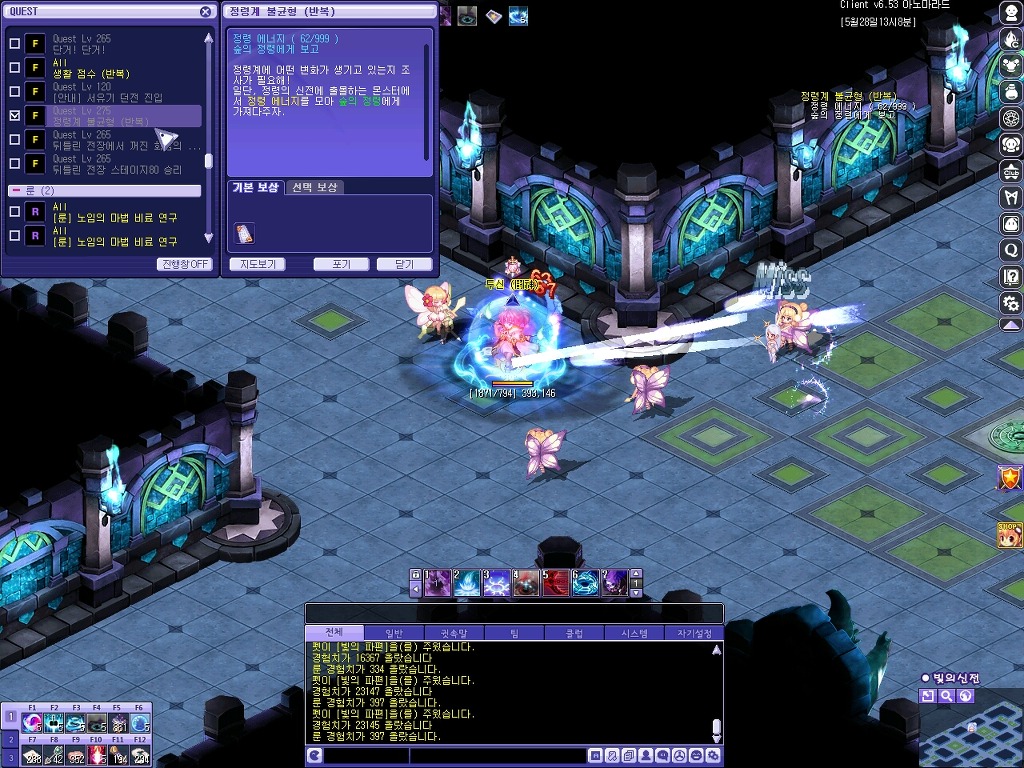 1) 퀘스트 존 진입: 숲의정령에게서 정령 에너지 퀘스트를 완료하시면