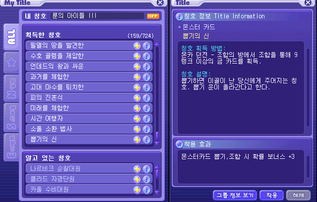 호칭 획득 방법엔 " 조합의 방에서 조합을 통해 9랭크 이상의 금 카드 획득" 이라고 쓰여있지만 9랭크가 아닌 금카드여도 됩니다.