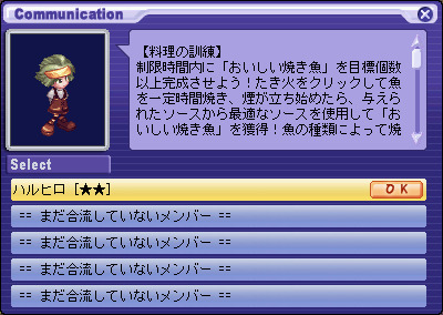 | 양으로 승부! | 요리의 훈련에서 작은 물고기만을 사용하여 맛있는 생선 구이를 만든다. | 이벤트 1 |