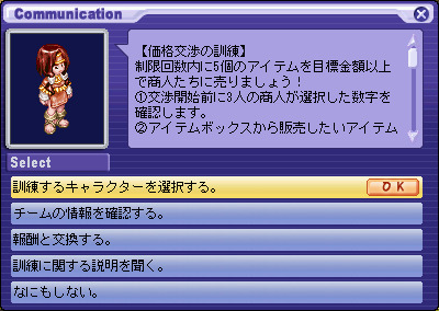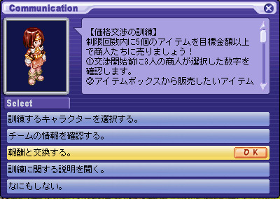| 나타난 신예 상인 | 가격 협상 훈련에서 5 개의 아이템을 모두 2 배의 가격으로 판매 완료한다. | 이벤트 2 |