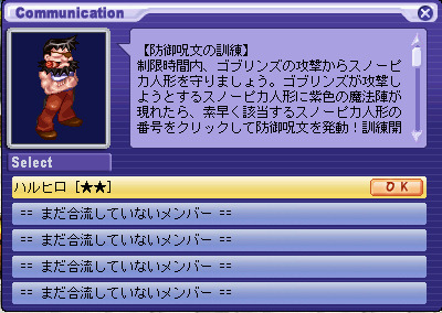 | 아슬 아슬한 방어 마법 | 방어 마법 훈련에 모든 스노삐카 인형의 머리 위에 느낌표 (!)를 표시시킨 상태에서 완료된다. | 이벤트 3 |