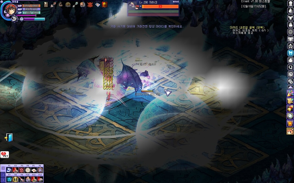 4번사진))) 자하크가 보호막이 생기고 몇초이후 방구폭탄을 막때려댑니다.