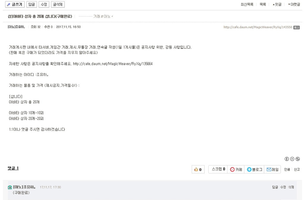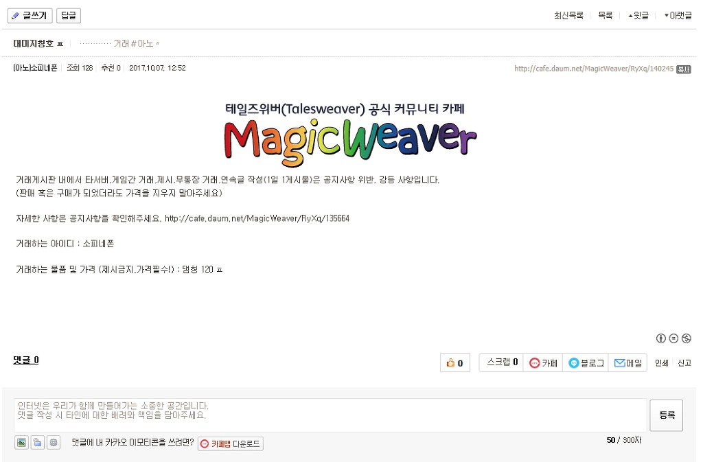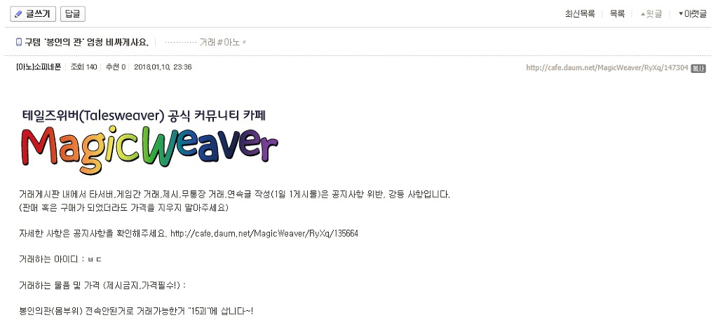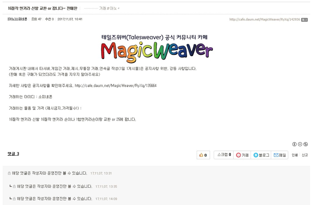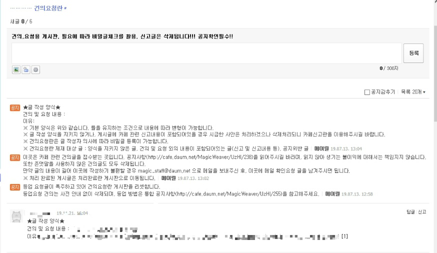 매직위버 카페에 대한 건의사항 혹은 테일즈 위버 건의사항 등과