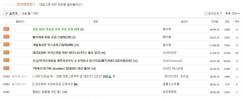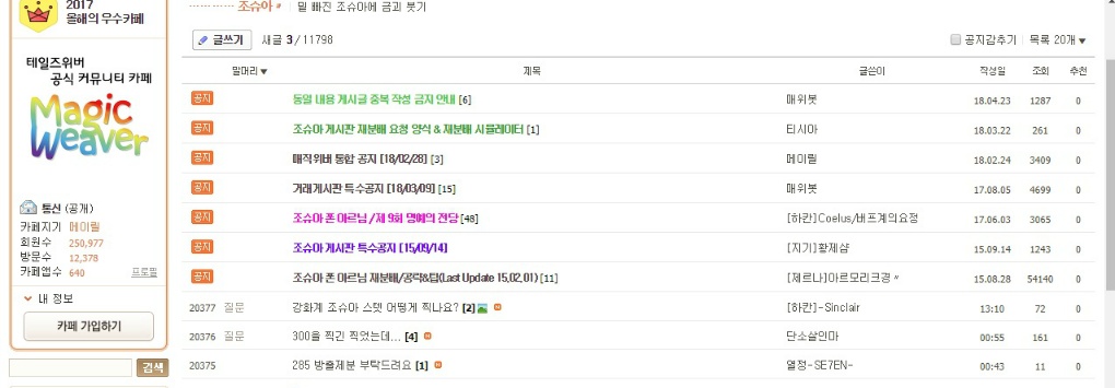 이제 본격적인,매직위버 게시판 탐구를 시작하겠습니다.