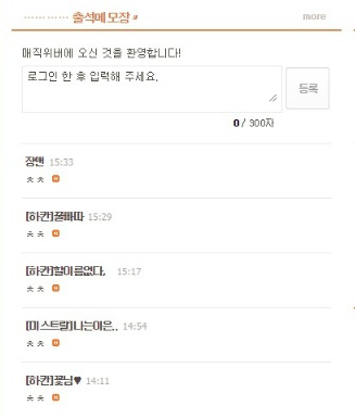 매위에 들어오시자마자 제일 먼저 이곳에 출석 도장을 찍는 게 일반적이지요.