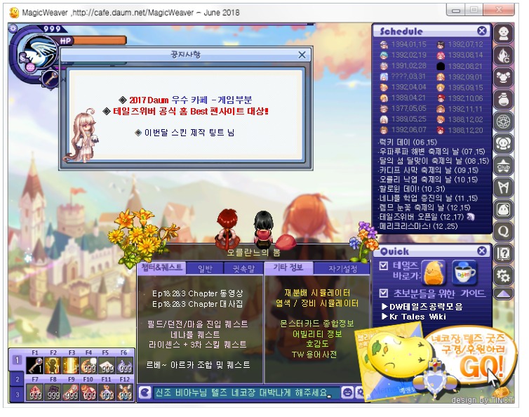 2.테일즈위버 대문 그림 아래 부분(?) 소개