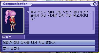 22. 장비상자를 실수로 버리거나 삭제했을경우 또는 상자를연 아이탬을 삭제했을경우 네냐플 교실앞 npc한테 말을걸면 다시 지급받을수 있다. (기간한정)