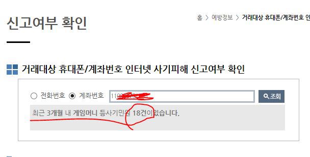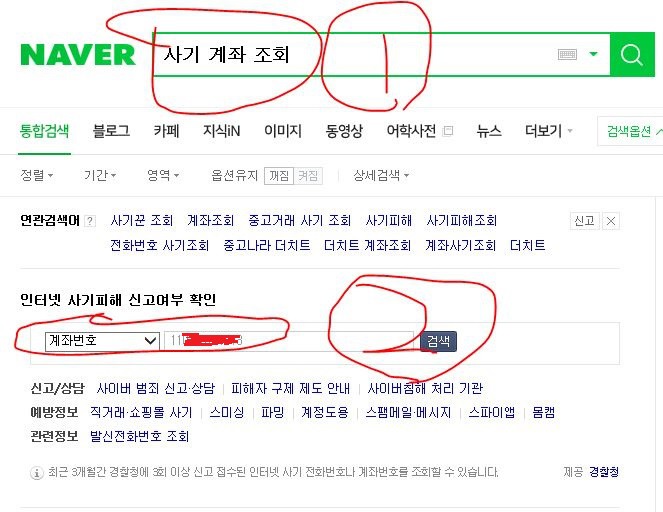 1. 초록색 페이지에서 "사기 계좌 조회" 검색.