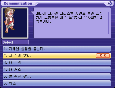 8. 배를 구매한 npc에게 배에 관련된 모든 것을 할 수 있음.