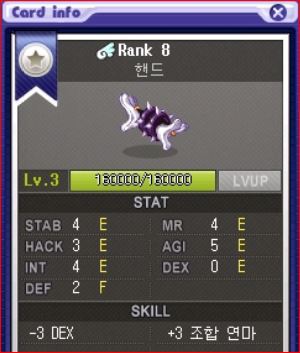 - 단순하게 루모리->NPC 주웅Jr -> 몬스터 카드 던전 8층에서 핸드를 잡으면서 CP를 채운 후 뽑아서 레벨업 하시면 됩니다.