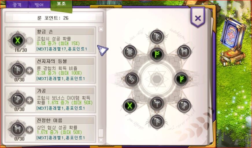 - 룬의 정원 -> 룬스킬북 -> "보조탭"에서 배울 수 있습니다.